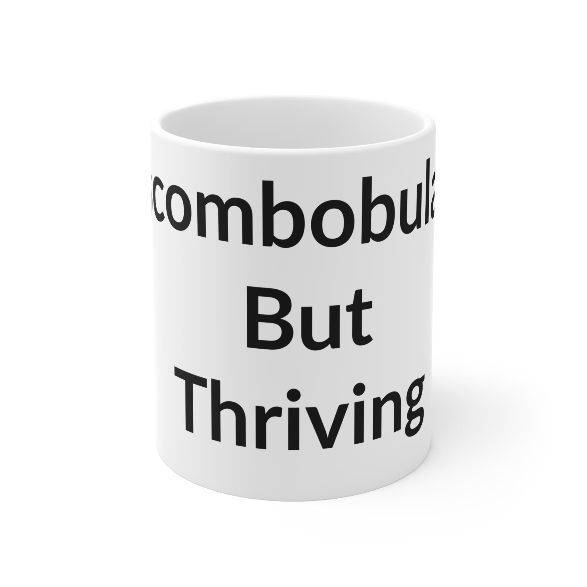 White Ceramic Coffee Cup - Discombobulated But Thriving